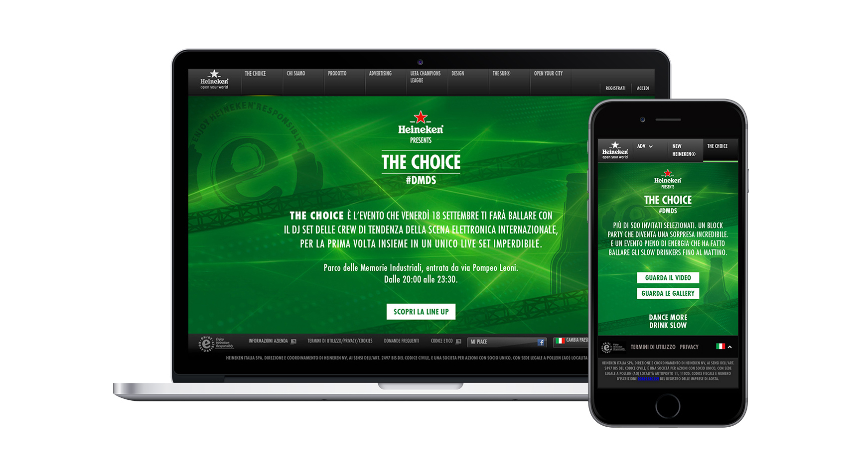 For Heineken’s international drink responsibly campaign, “Dance more drink slow,” we created a 360° branded activation project. “The Choice” was an immersive experience from sunset to sunrise narrated through digital activation and a unique storytelling short film.