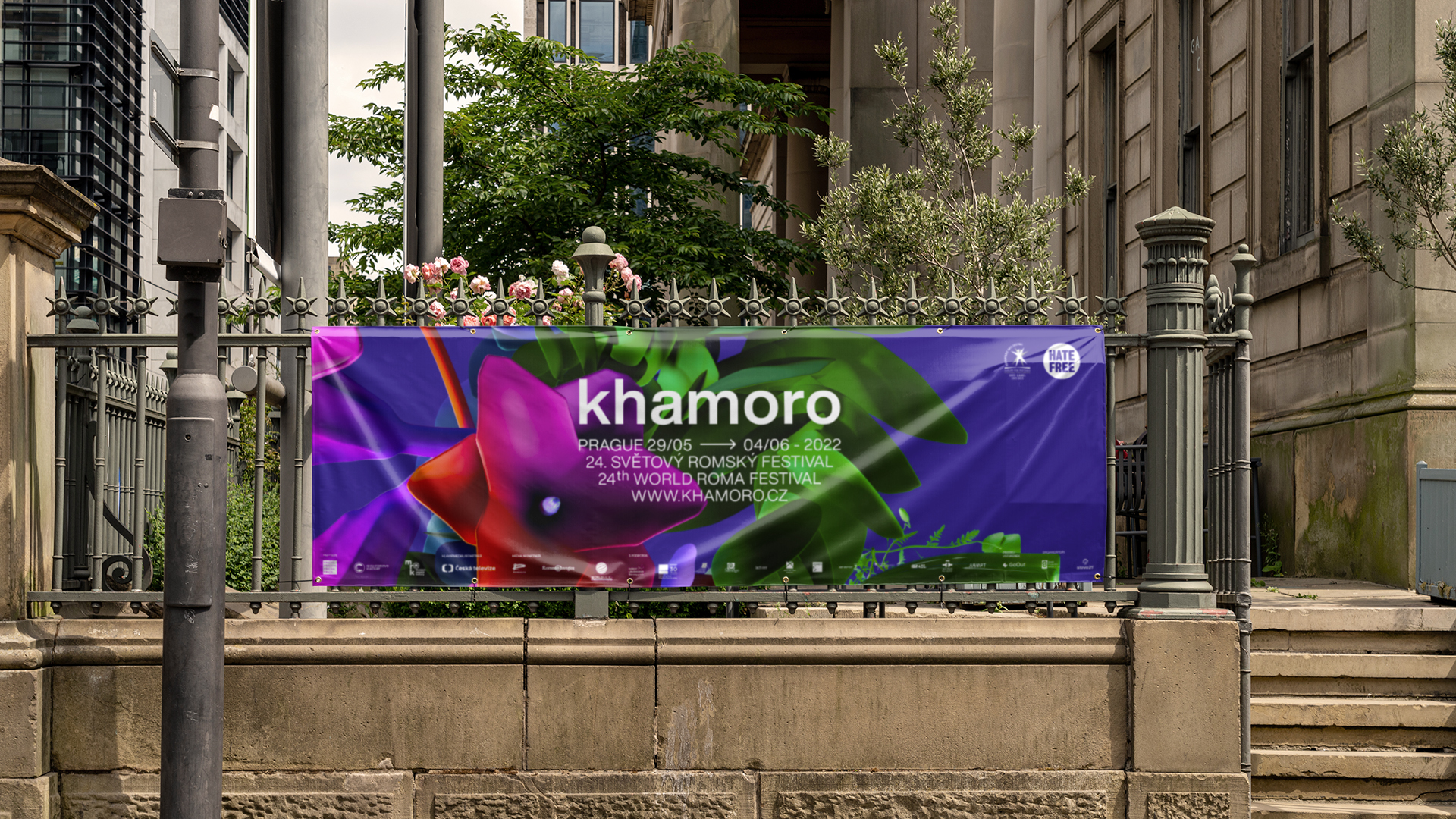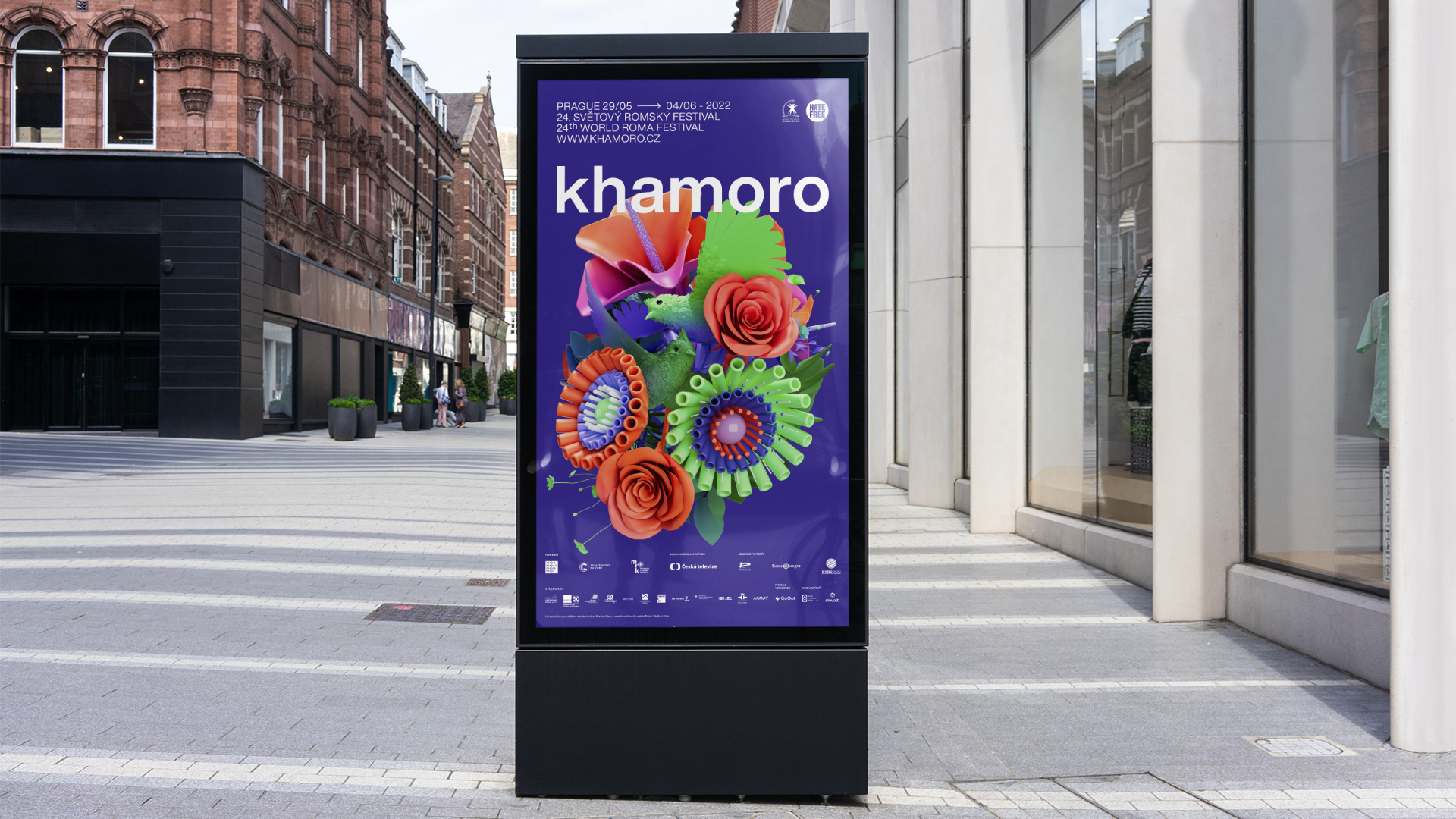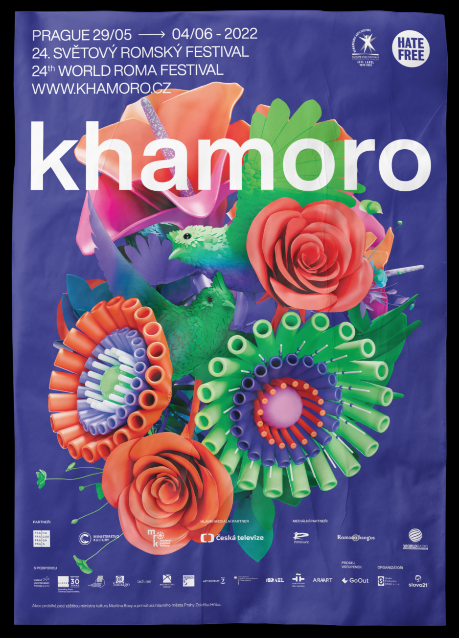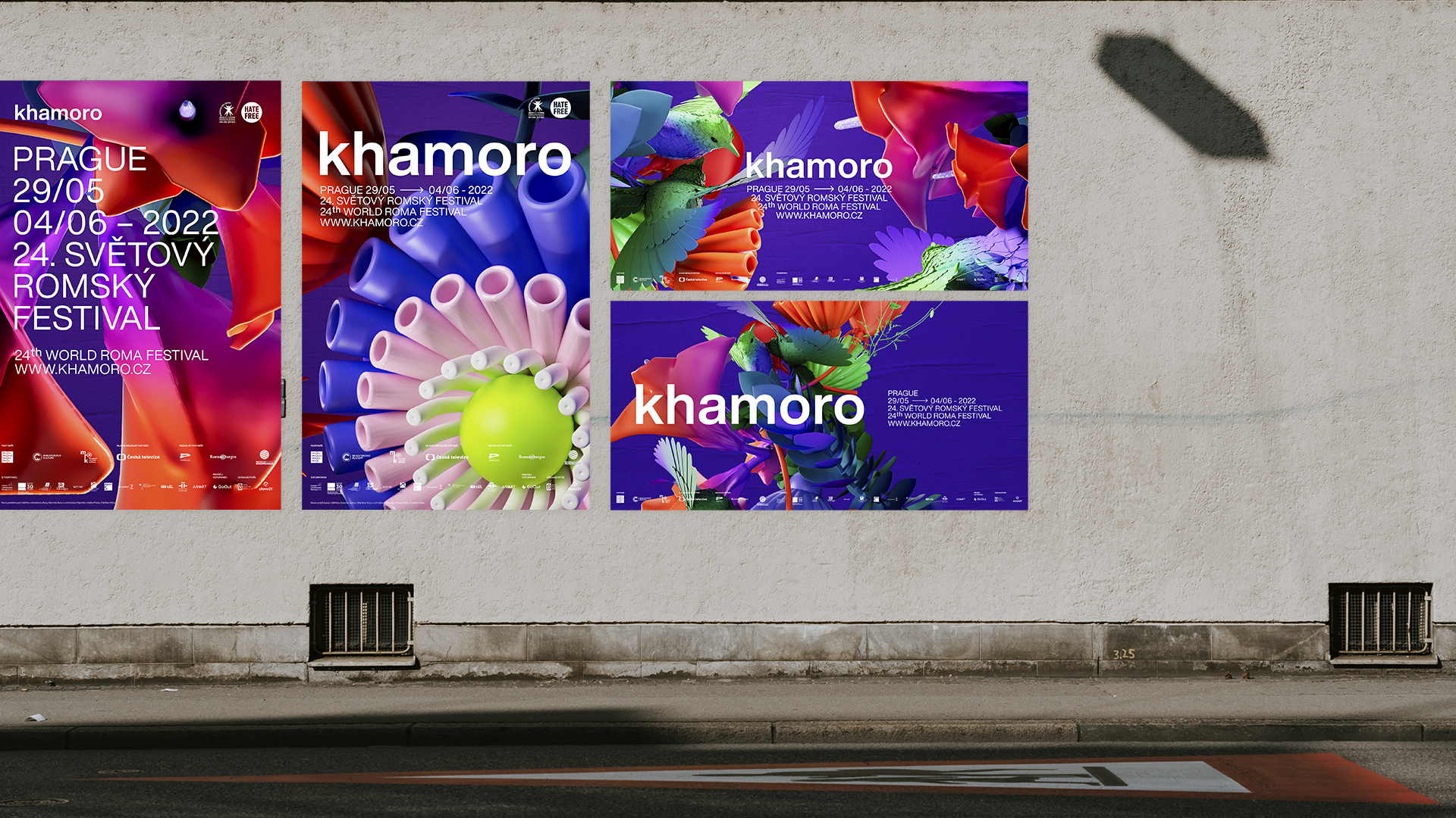 Khamoro is the world Roma festival based in Prague, Czechia. I've been designing the main visual communication for the festival since 2010, and it's still my favorite project. For the 2022 edition, we collaborated with Denis Paladin to capture the colorful Roma world through 3D elements.